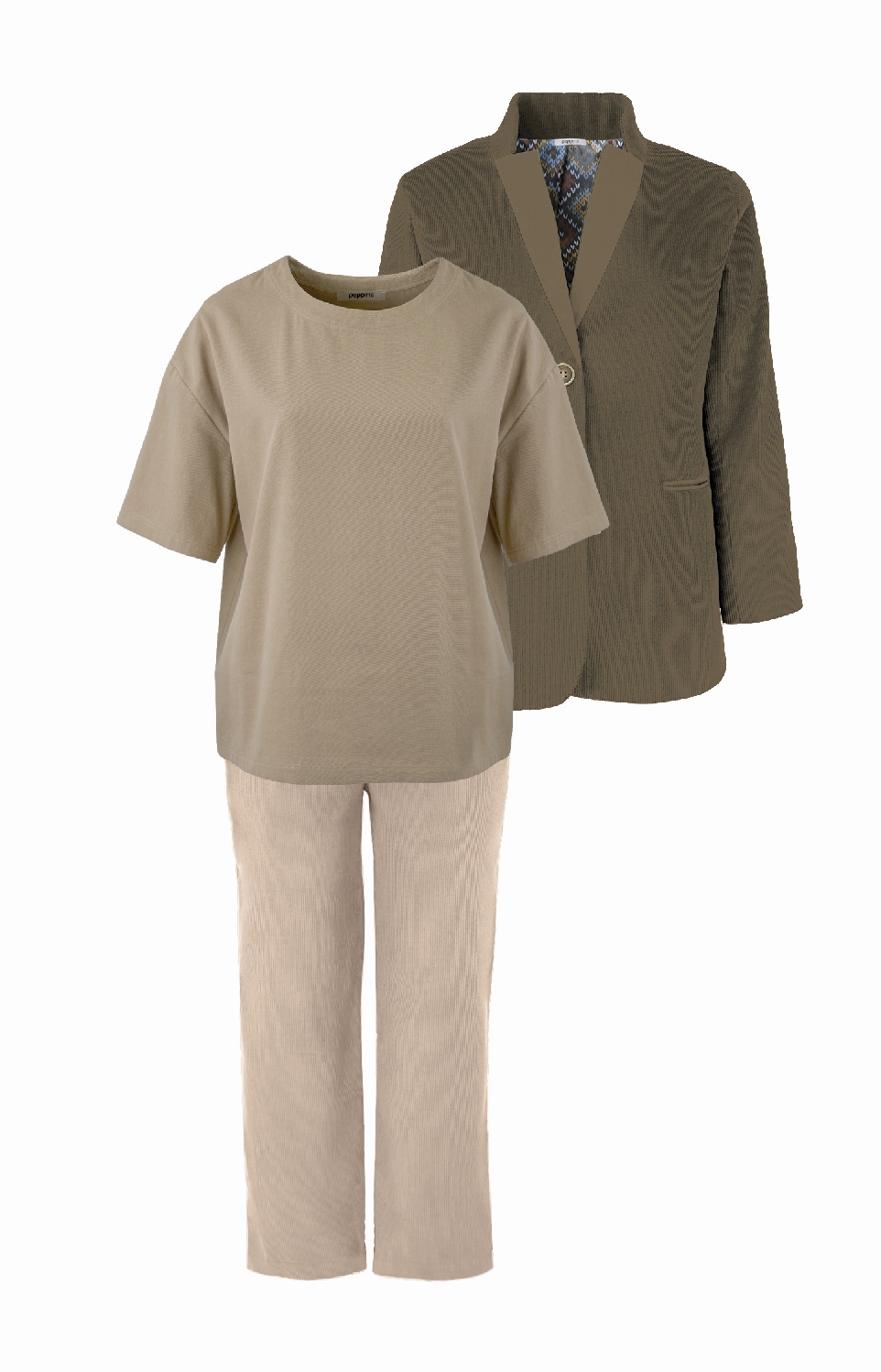 Даже если вещи почти одного цвета, образ может выглядеть интересно, если соединить: