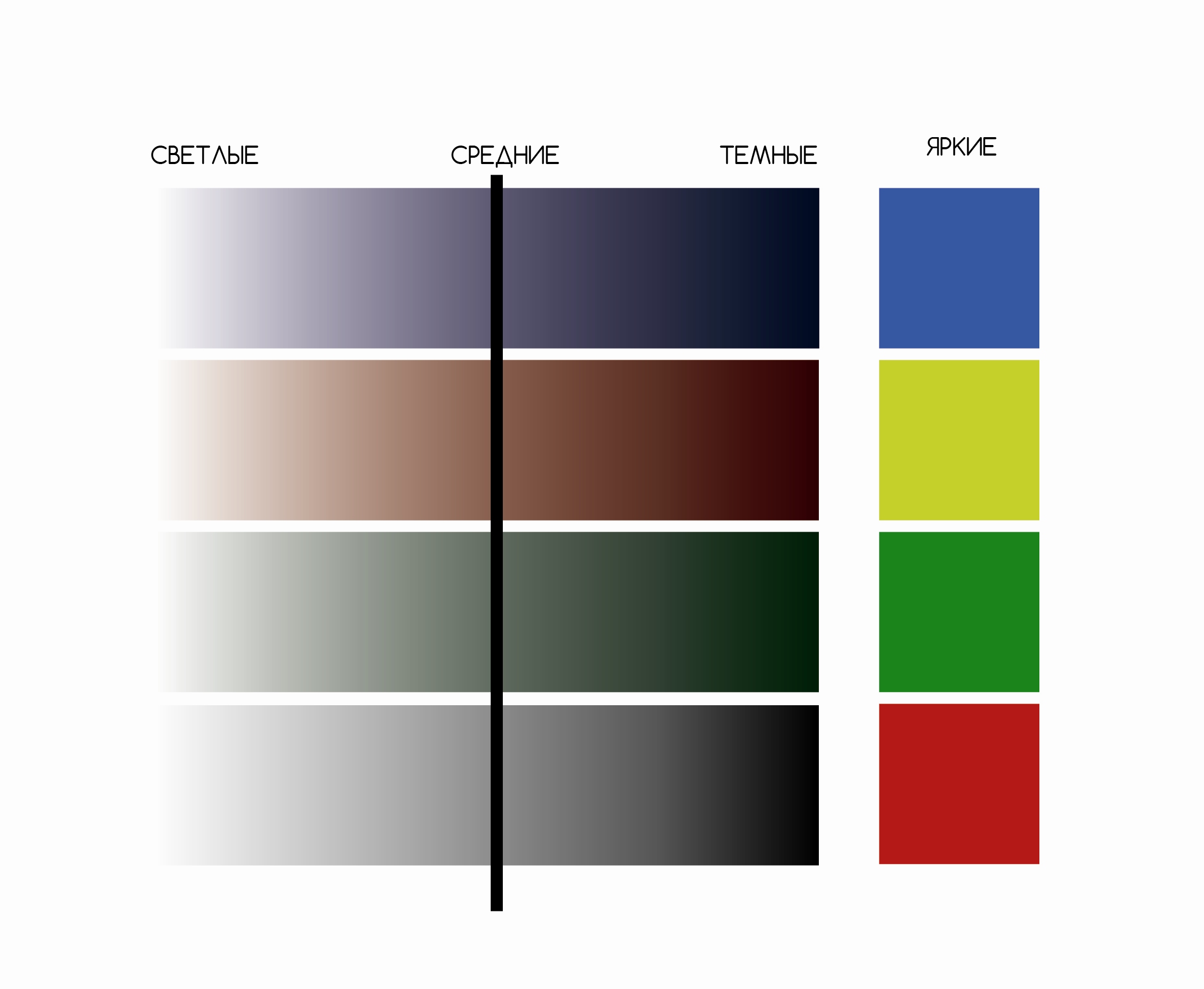 Средняя тональность находится между светлым и тёмным.