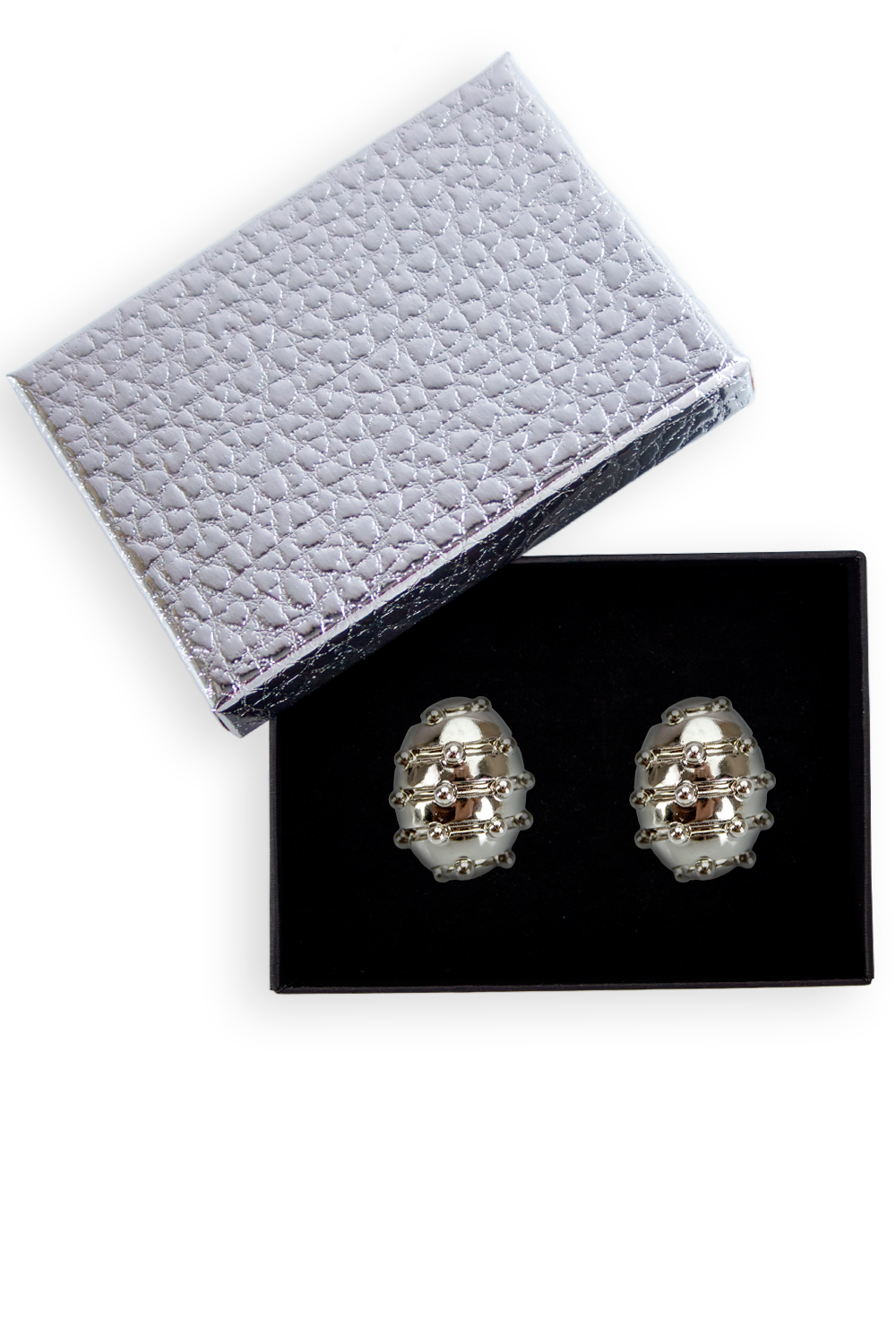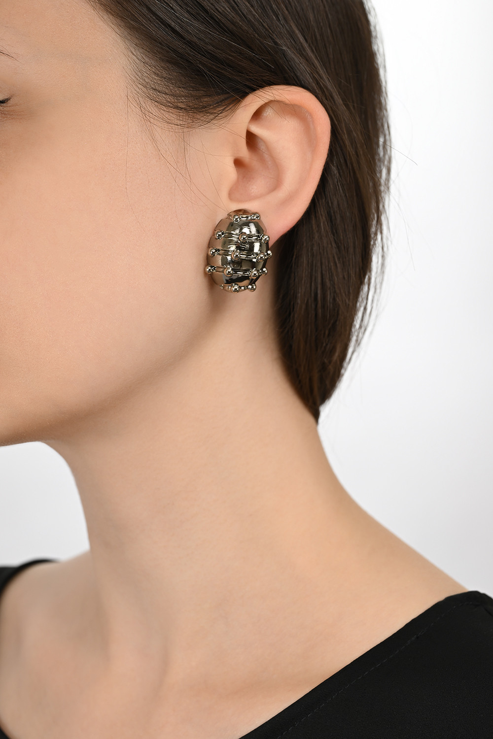 Легкие серьги из ювелирной керамической смолы с покрытием глазурью, размер 2,7*2 см — стильное решение для современных образов. Графичный дизайн придаст вашему праздничному или деловому наряду изюминку и станет стильным акцентом. Доступны застежки - пусеты для проколотых ушей и клипсы, в трех цветах - черный оникс, сусаль и серебристый. Универсальные серьги подходят к классическим костюмам и современным образам, делая их идеальным выбором для ежедневных и торжественных выходов.