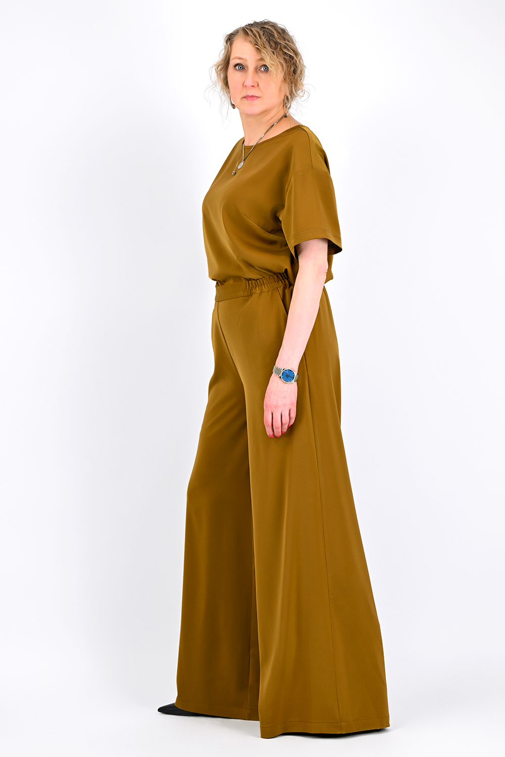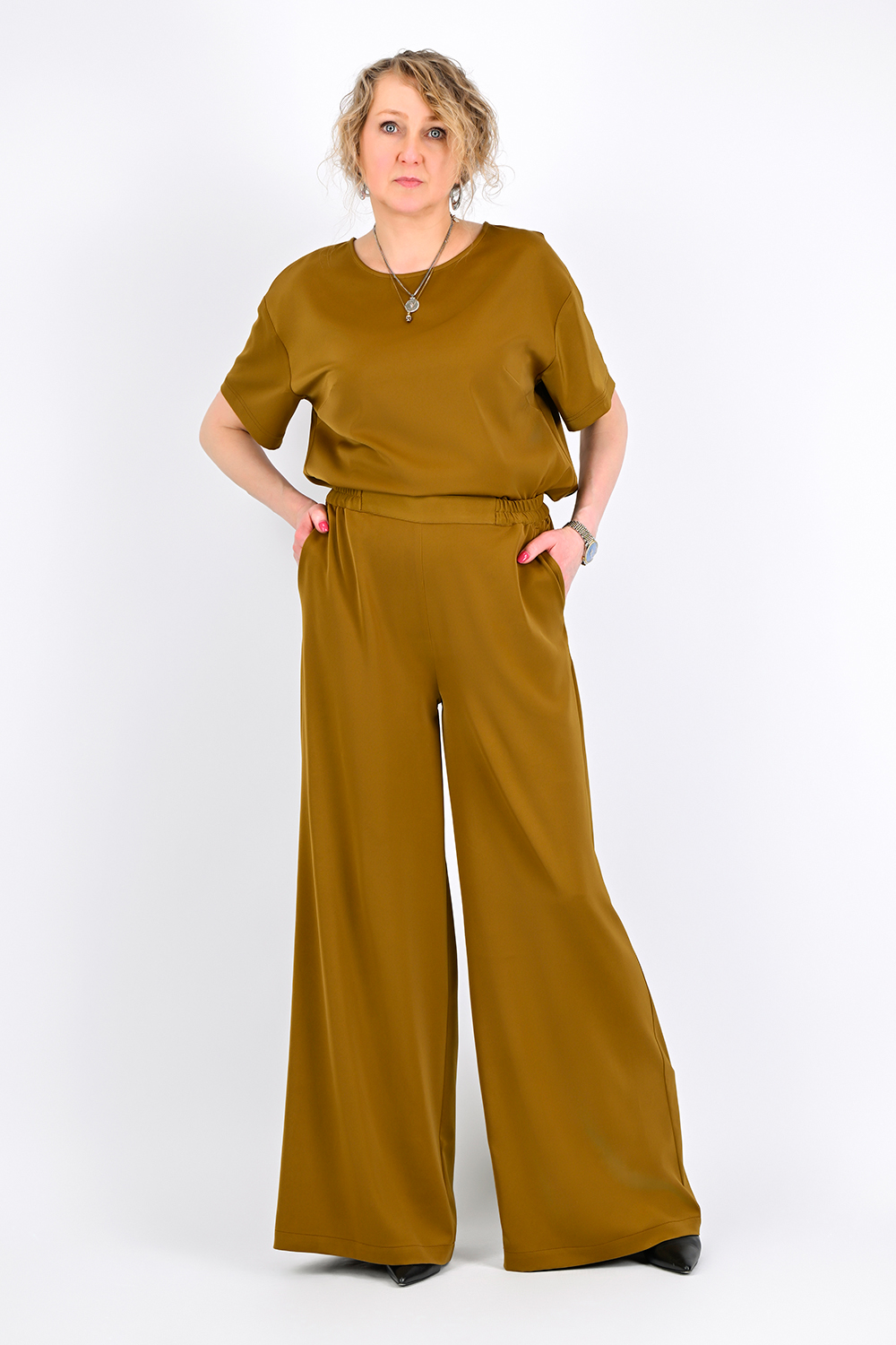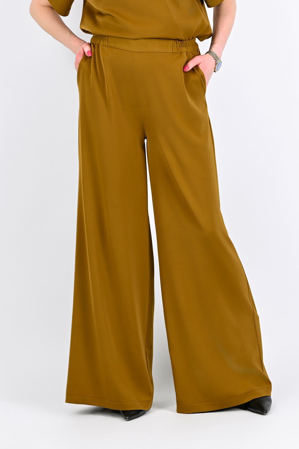 Брюки из сатина с эластичным поясом