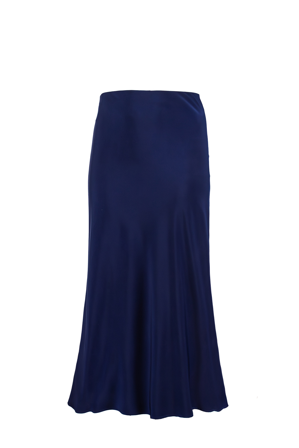 Сатиновая юбка длины мидакси, из матового сатина премиум класса идеально садится по фигуре, за счет косого кроя. Модель полуприлегающего силуэта, расклешенная к низу, пояс цельнокройный на резинке.