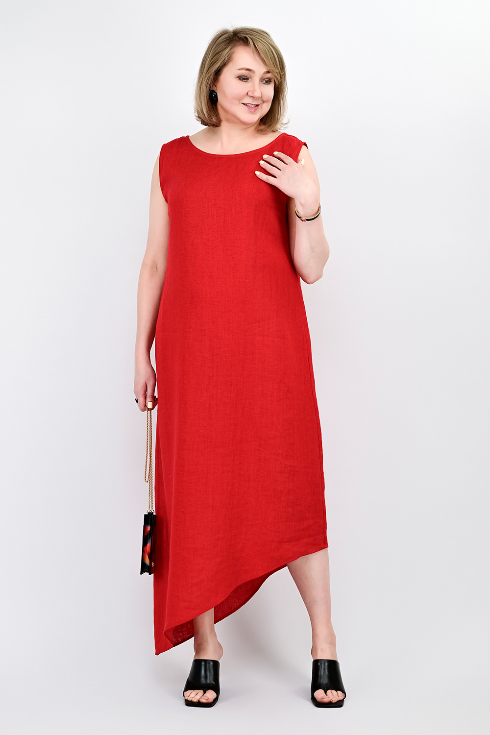 Льняное платье с асимметричным низом