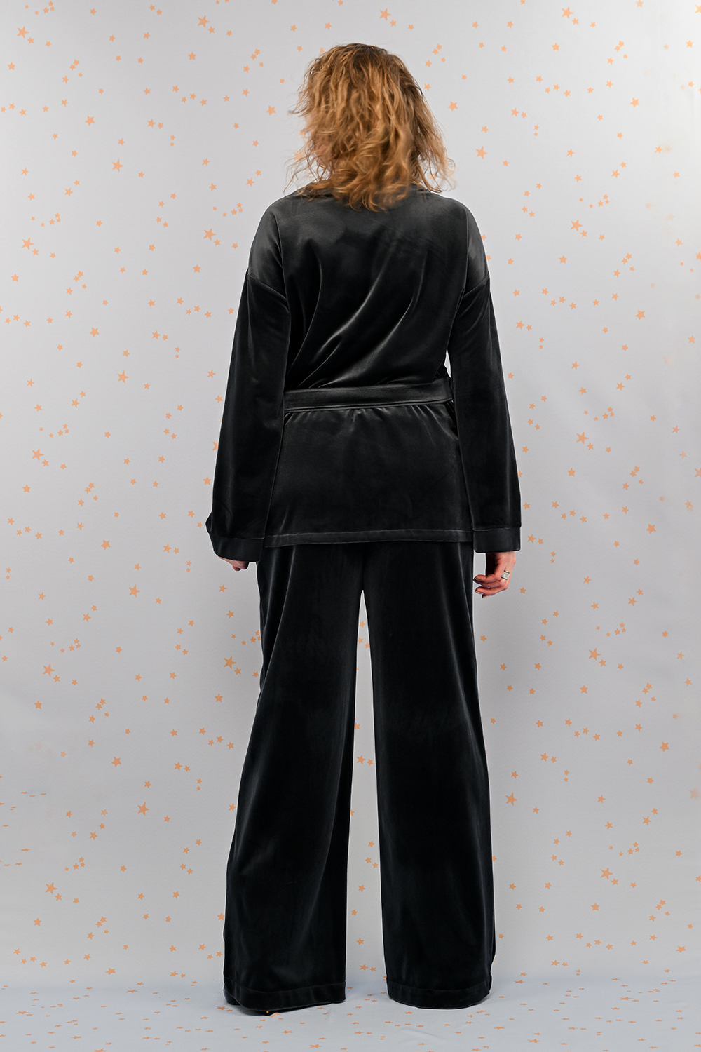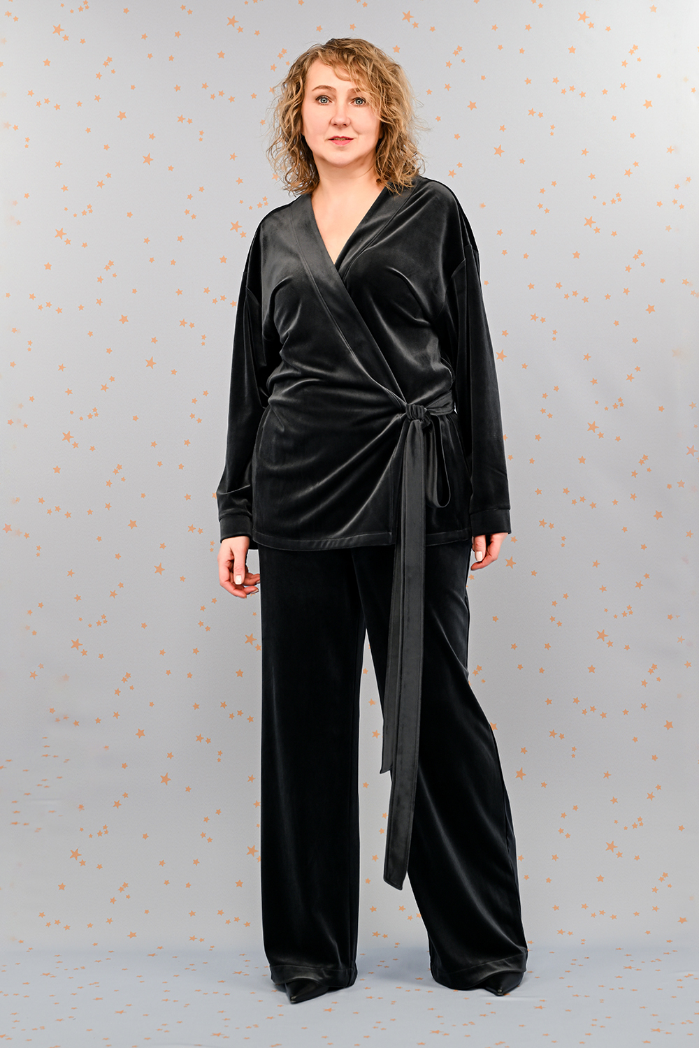Мягкий жакет-кимоно из шелковистого бархата - идеальный баланс стиля и комфорта. Невероятно мягкий, гладкий бархат красиво играет на свету, создавая глубокие переливы цвета. Кимоно из такого бархата совершенно не полнит, а напротив - ниспадающая текстура ткани и крой на запах создаёт стройнящую вертикаль. А при помощи пояса формируются драпировки, подчёркивающие линию талии. За жакетом легко ухаживать: он практически не мнётся, легко стирается и быстро сохнет. С кимоно можно собрать и нарядный, и повседневный образ. Отличная инвестиция в гардероб.
