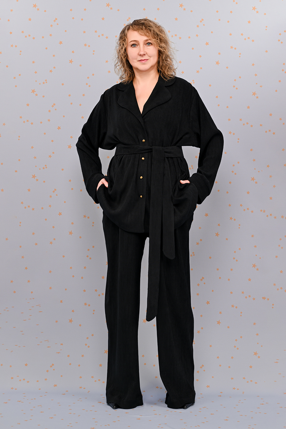 Жакет с поясом из жатого велюра