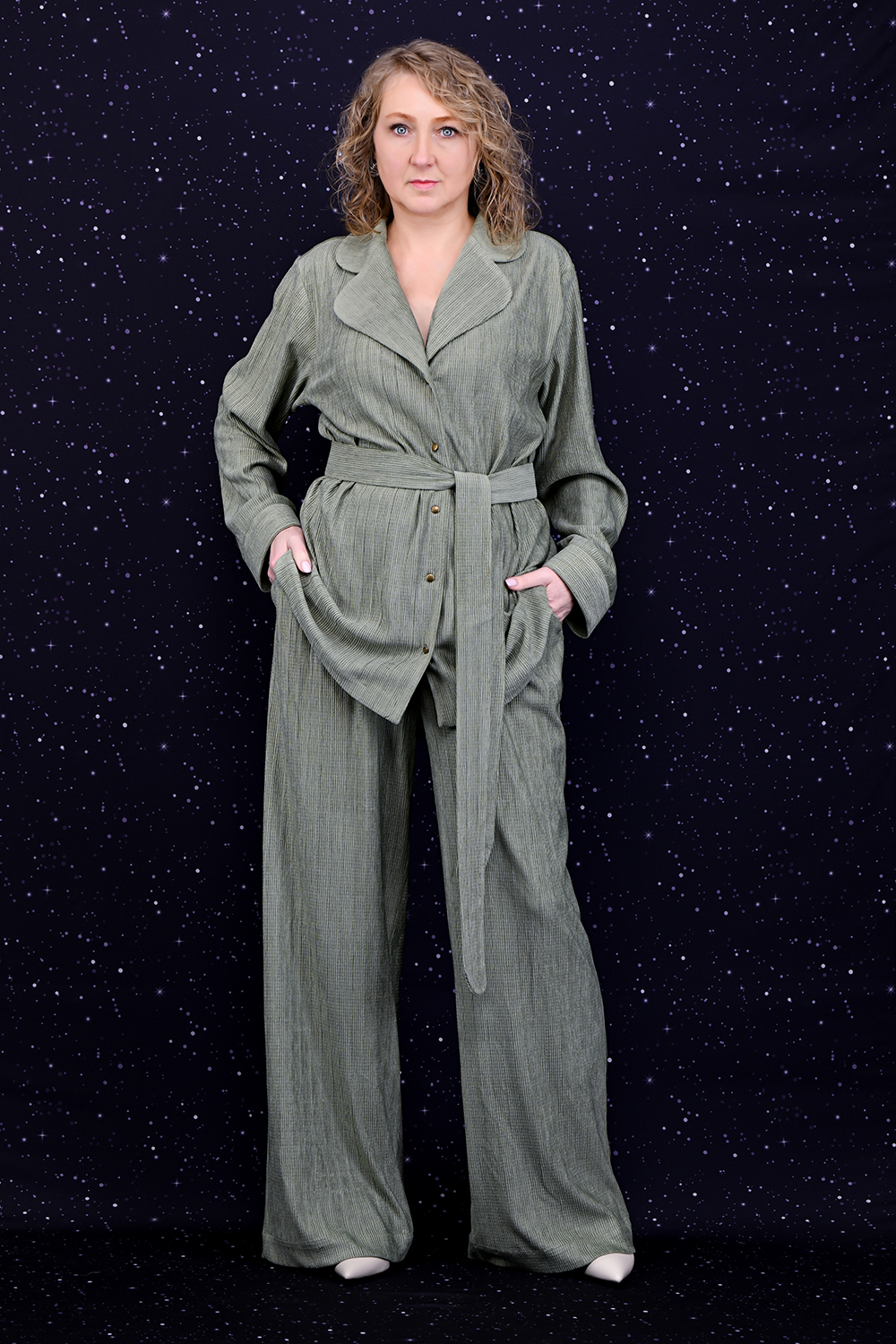 Жакет с поясом из жатого велюра