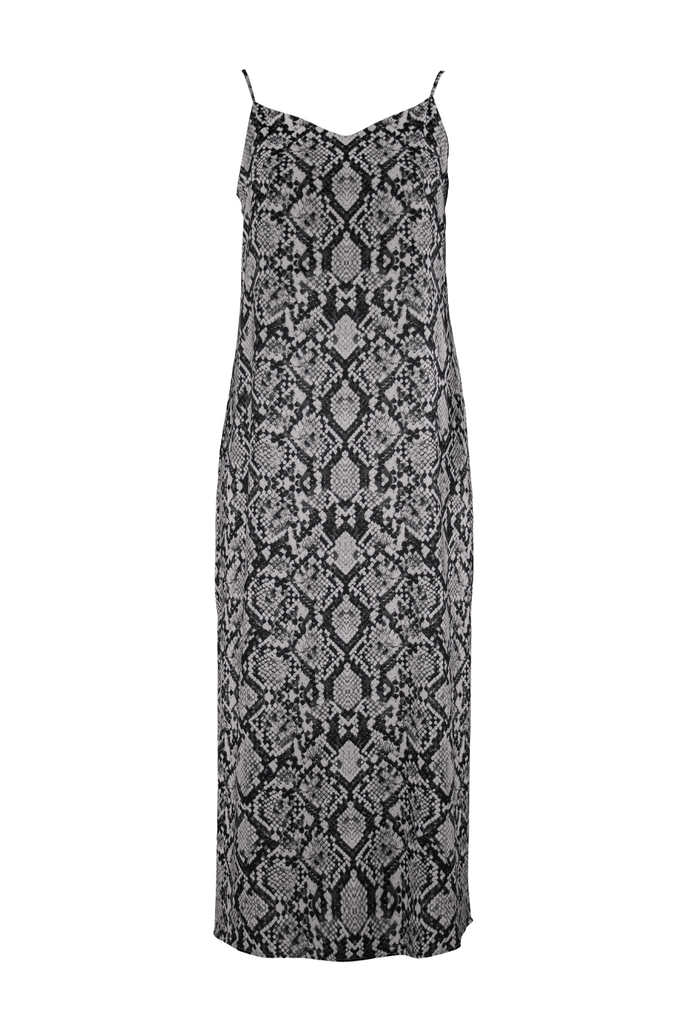 Платье - комбинация длины макси из матового сатина с аннималистичным принтом - идеальный выбор для создания элегантного образа. Нежный V-образный вырез подчёркивает линию декольте и добавляет женственности, а регулируемые бретели со слайдерами обеспечивают идеальную посадку. Волнующий разрез по боковому шву добавляет модели лёгкости и изящества. Базовое платье плюс сайз отлично сочетается с рубашками, кардиганами и жакетами и будет уместно как в повседневных, так и в вечерних образах.